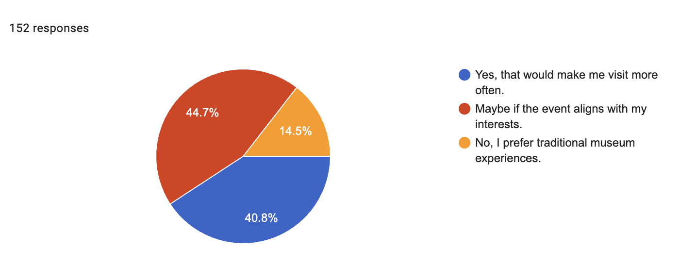 The aim is to collect a broad range of information on the museum visiting habits and attitudes of Gen Z audiences. By quantifying the data from 152 participants who answered 10 questions, we will identify their visiting frequency, preferred museum types, main motivations, and perceptual barriers, thus pinpointing key directions and common trends for subsequent in-depth research.