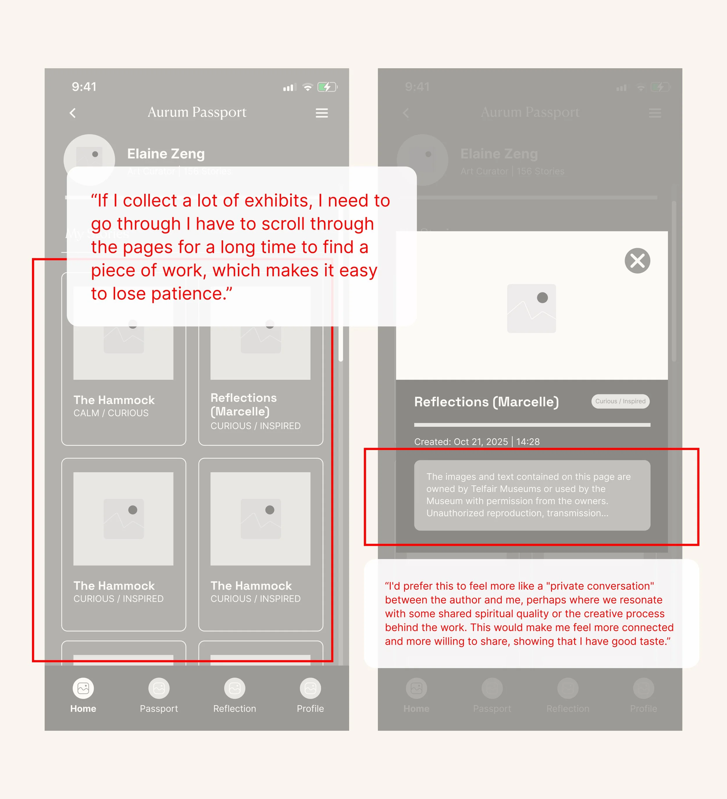 Feedback: The passport interface became cluttered as content increased; users suggested categorizing by emotion (e.g., "Quiet Moments," "Curious Encounters").